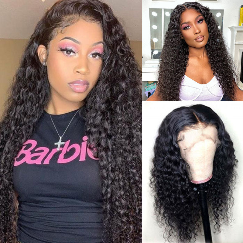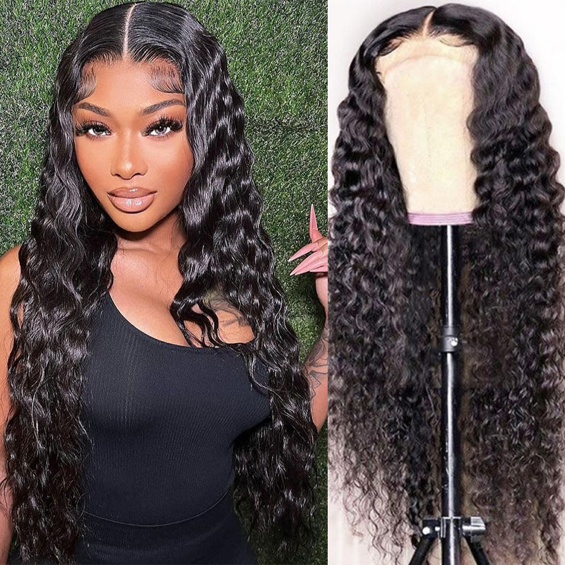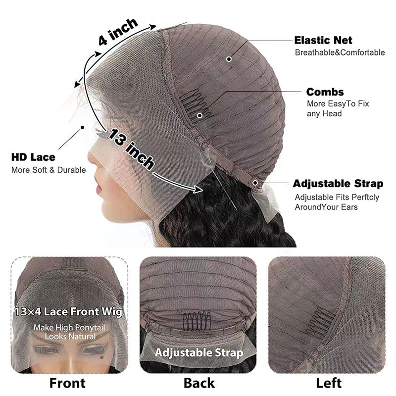 Wesface Deep Wave 13x4 Lace Front Wig Natural Black Human Hair Wig